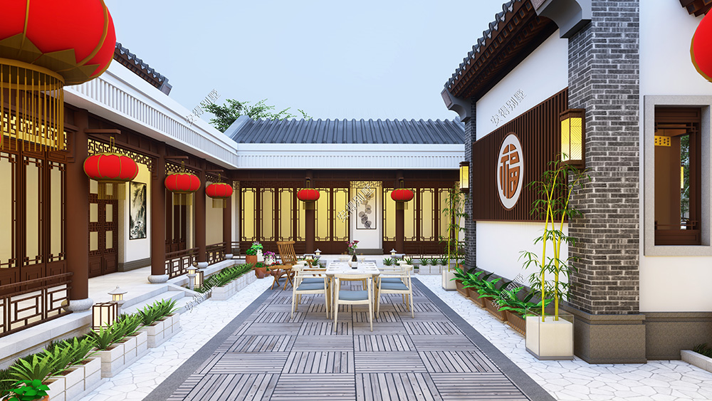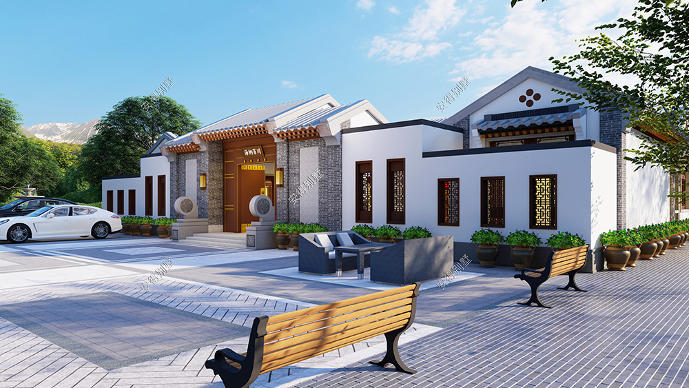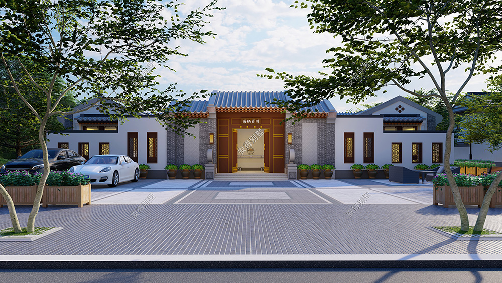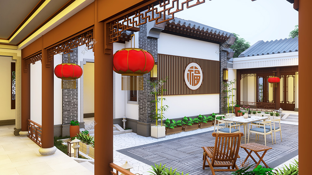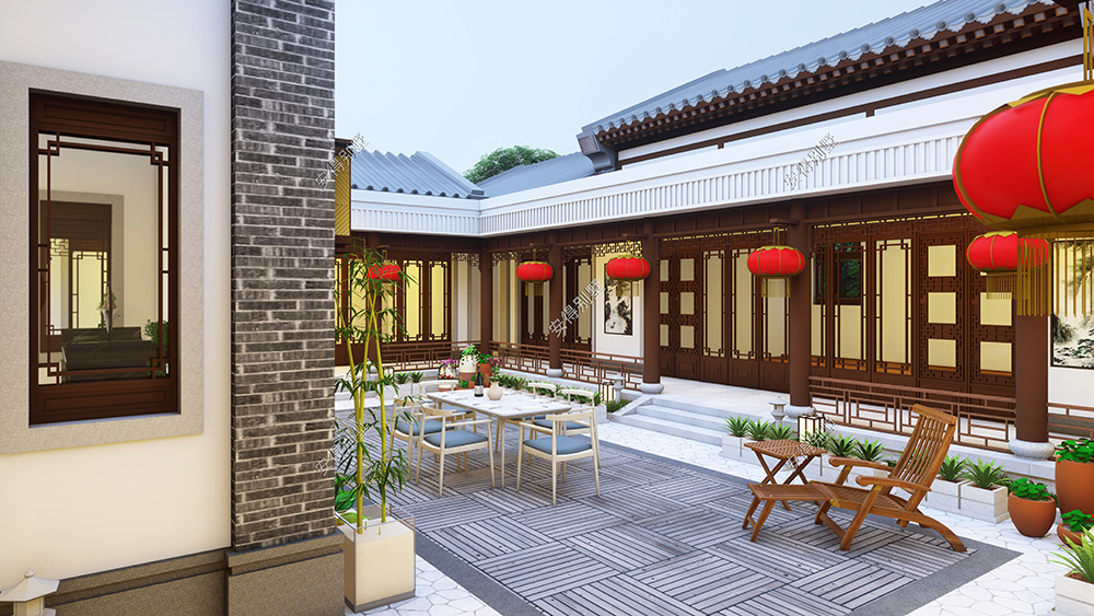 这是一栋温馨的居家型四合院,外墙采用经典的青砖和白墙结合设计,建筑丰富又立体;屋顶通过传统硬山顶的高低错落变化,简单的体块形成漂亮的空间关系,形成精致而漂亮的外观,中式韵味十足的内庭院雅致又惬意。