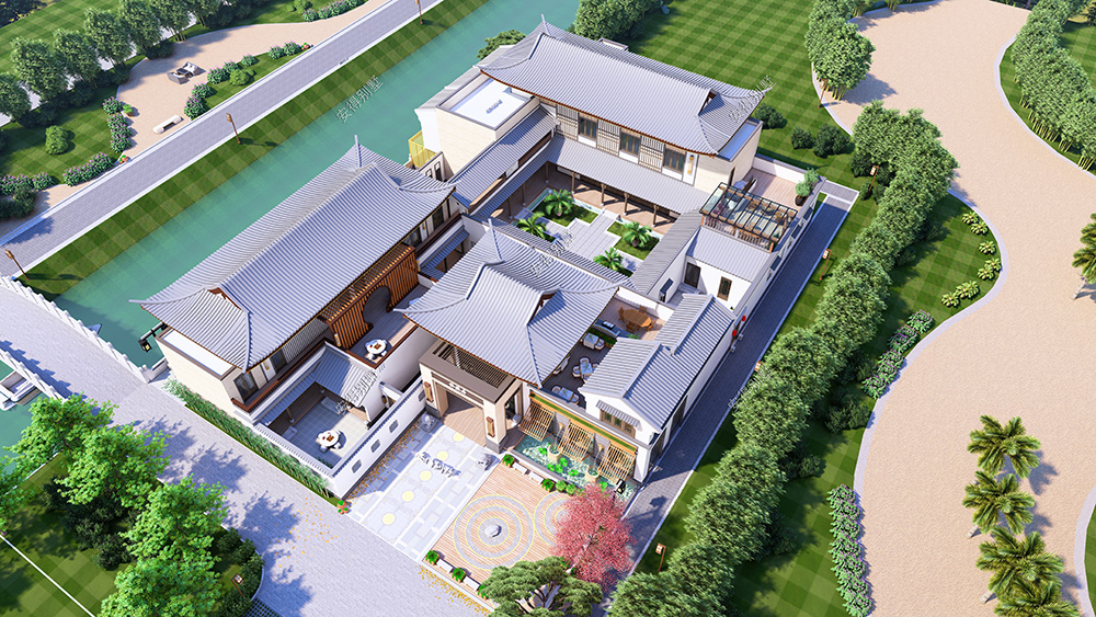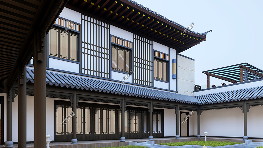 这是一栋民宿型中式合院,依景而建,给人回归自然的恬静感。外观采用了传统的白墙灰瓦,搭配木质格栅装饰,庭院小景与绿化相融合,给人美好与舒适;屋檐口处微微翘起,给建筑增添了几分柔美和韵味;合院分为大小3个合院,小合院可容纳大家庭成员居住,大合院包含各功能房,庭院美景就想一幅长长的画卷,逐步展开,大庭院衔接着小庭院,令人心旷神怡。