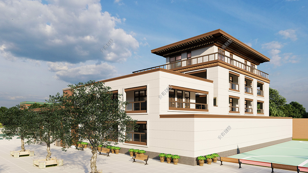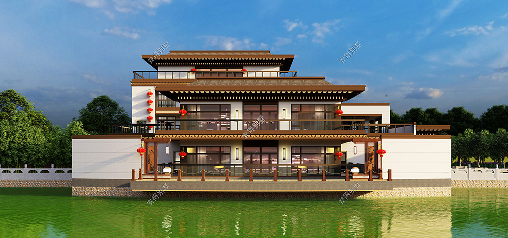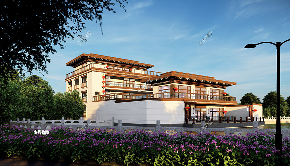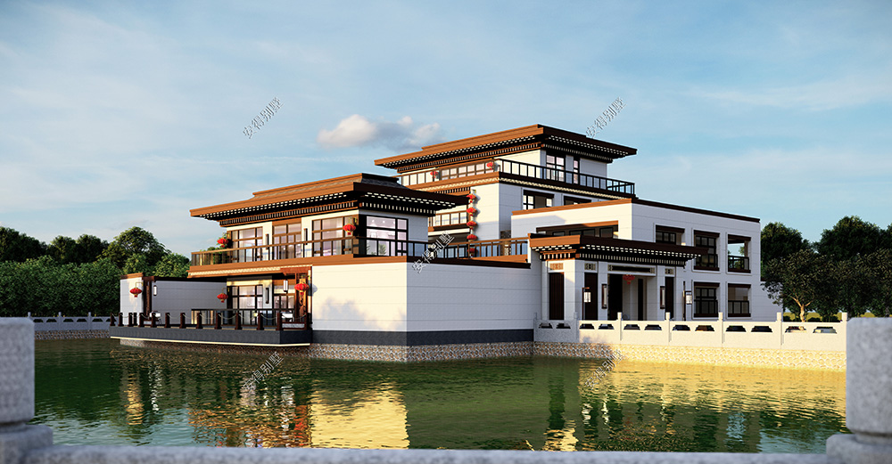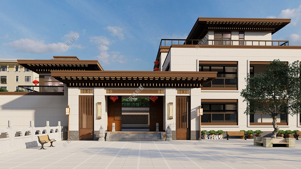 本项目属于别墅合院类,一共由3栋楼组成,楼与楼之间通过连廊和庭院连接,高低错落有致,主次分明。外观属于现代中式风格,利用简单平静的现代手法突显中式韵味,建筑整体简明而又雅致。